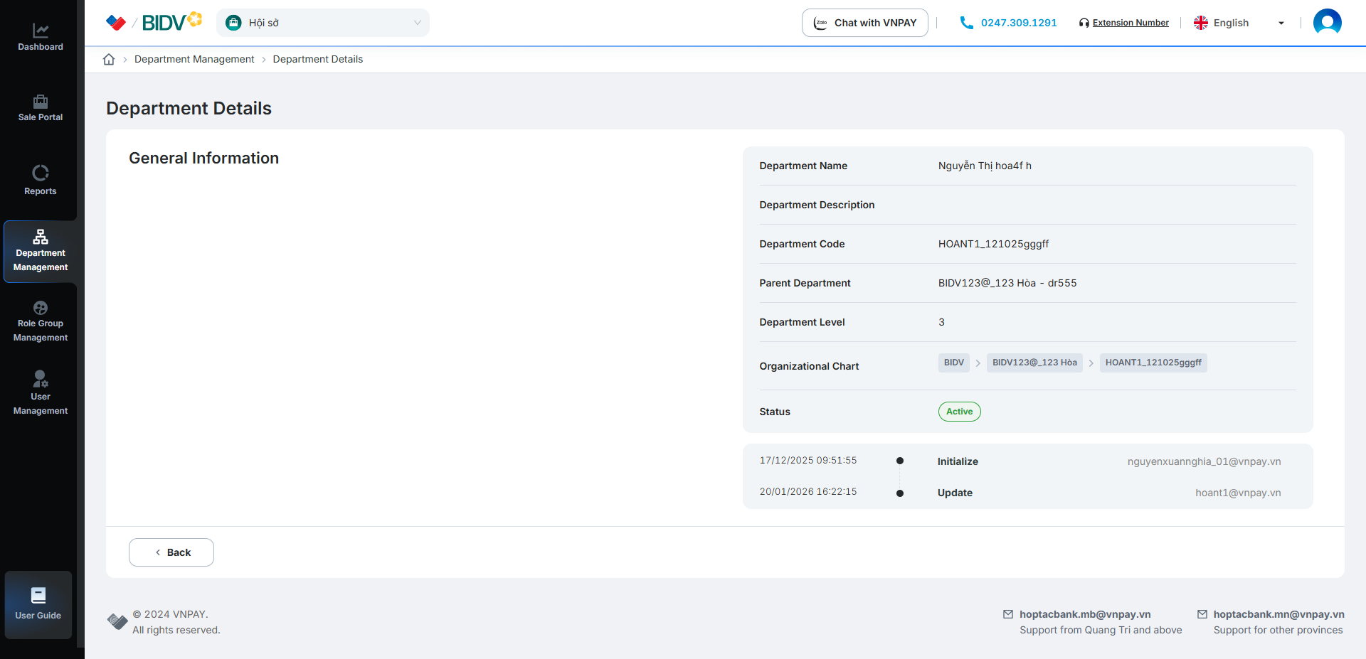 Click the [] button to view department details
