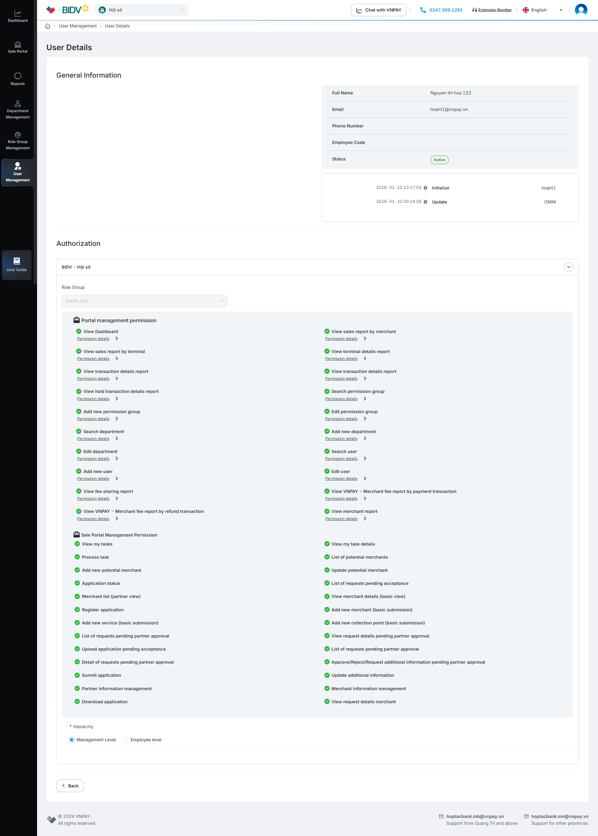 Click the [] button to view user details
