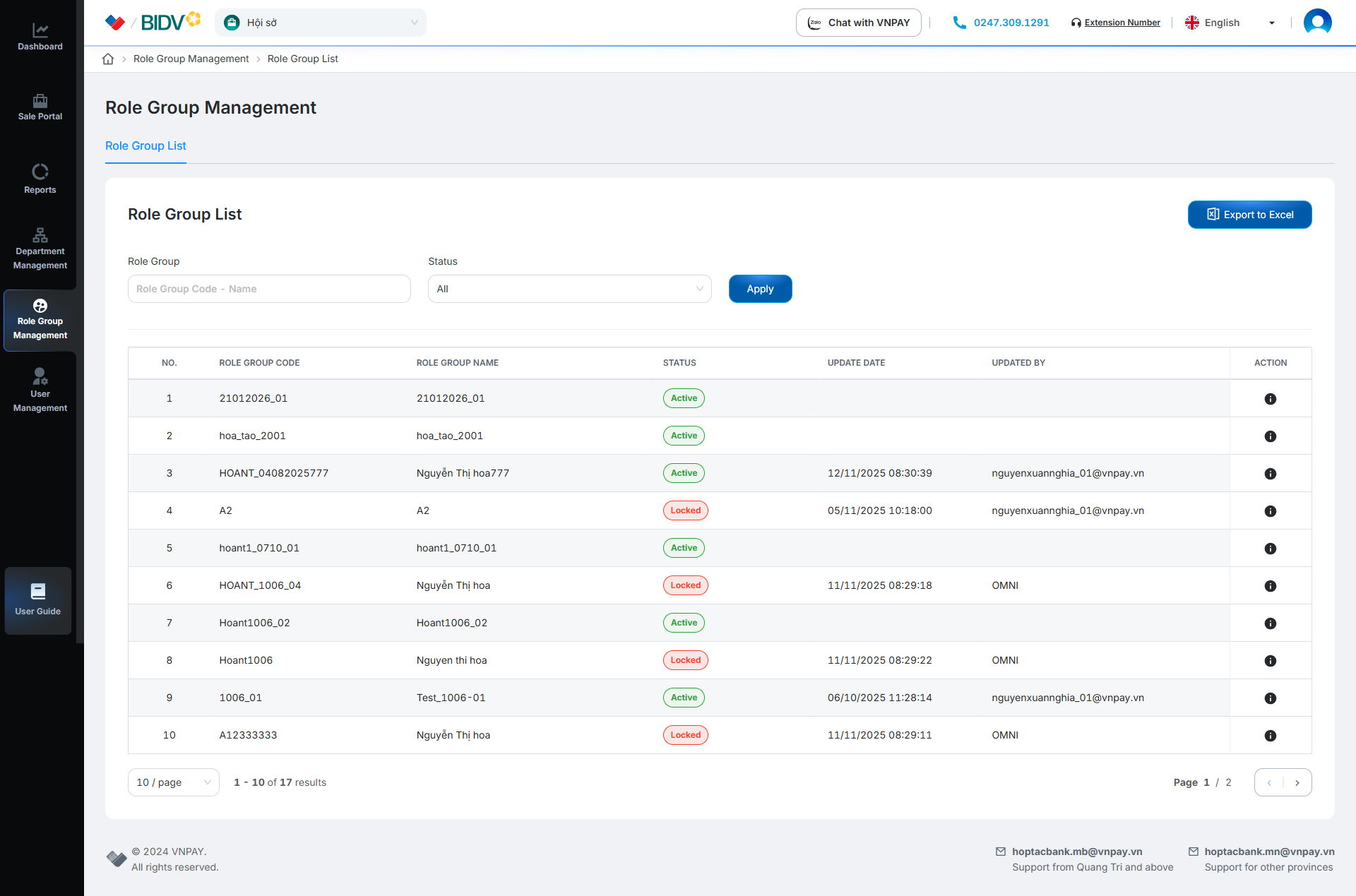 On the Role Group List screen