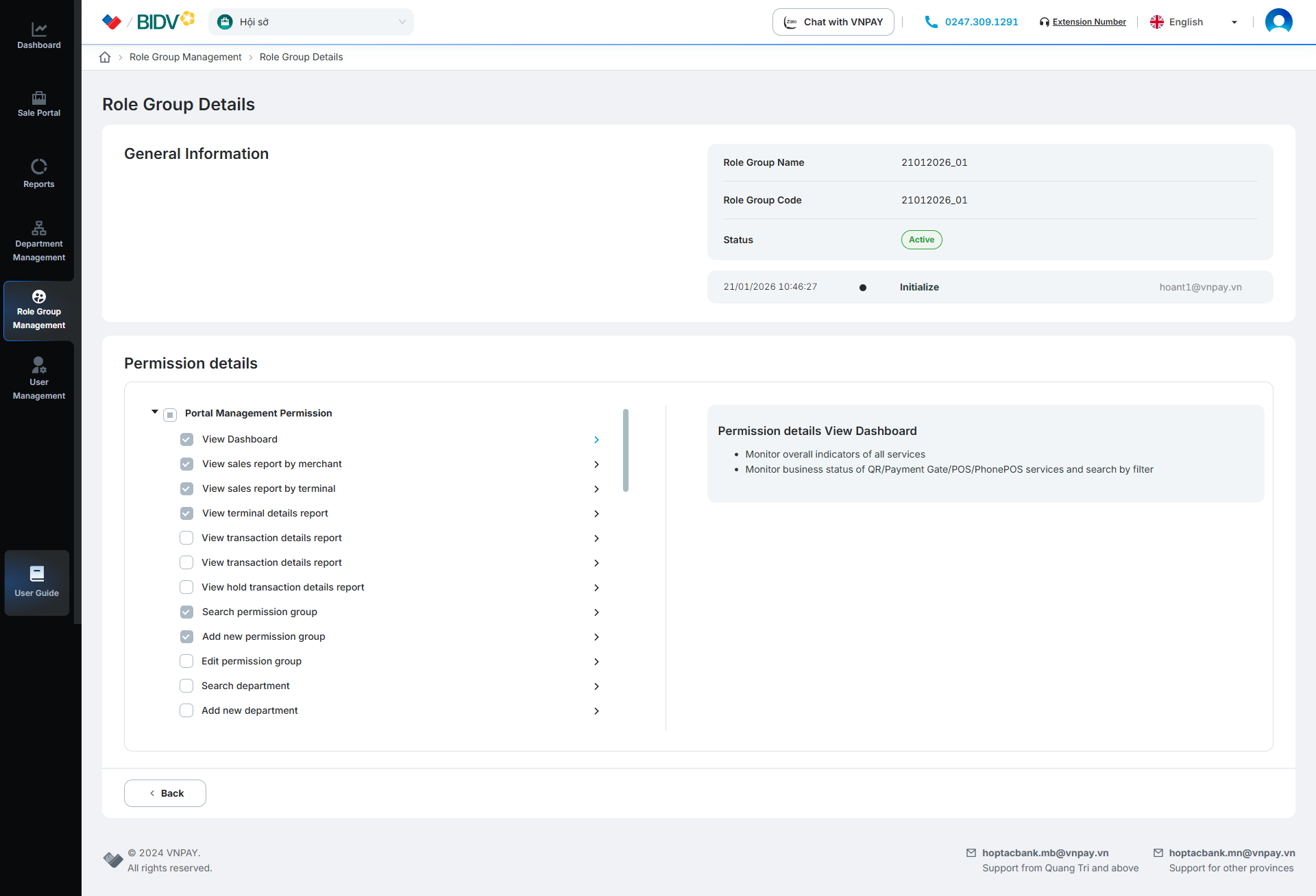 Click the [] button to view role group details