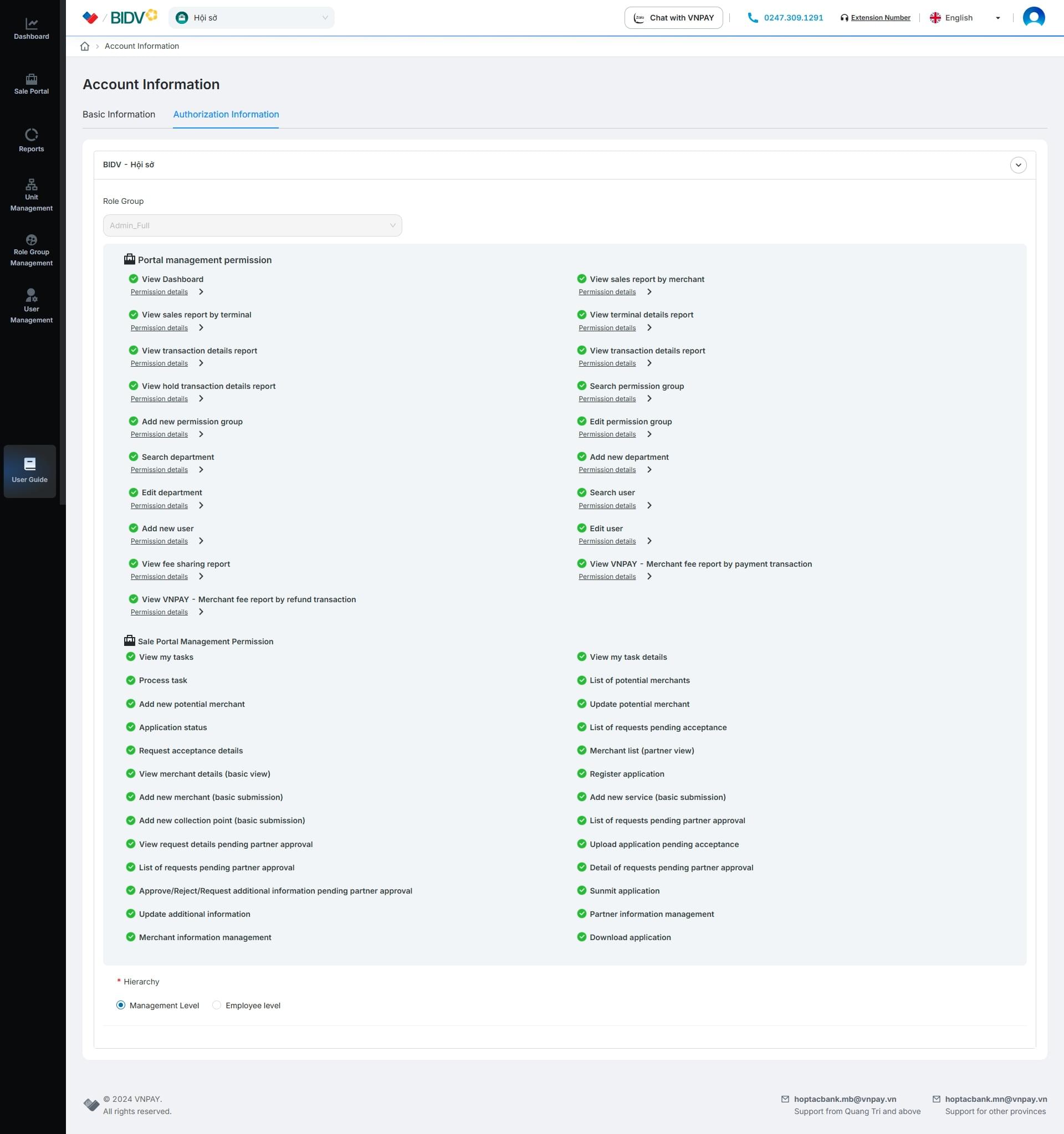 On the Permission Information tab, the user can see which Departments they belong to and what Permissions they have.